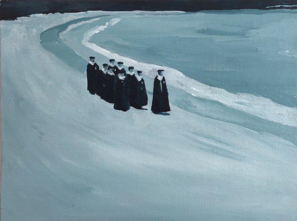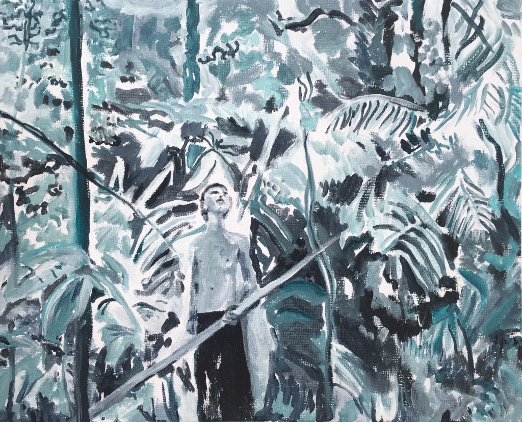 Sept peintures acryliques sur carton toilé